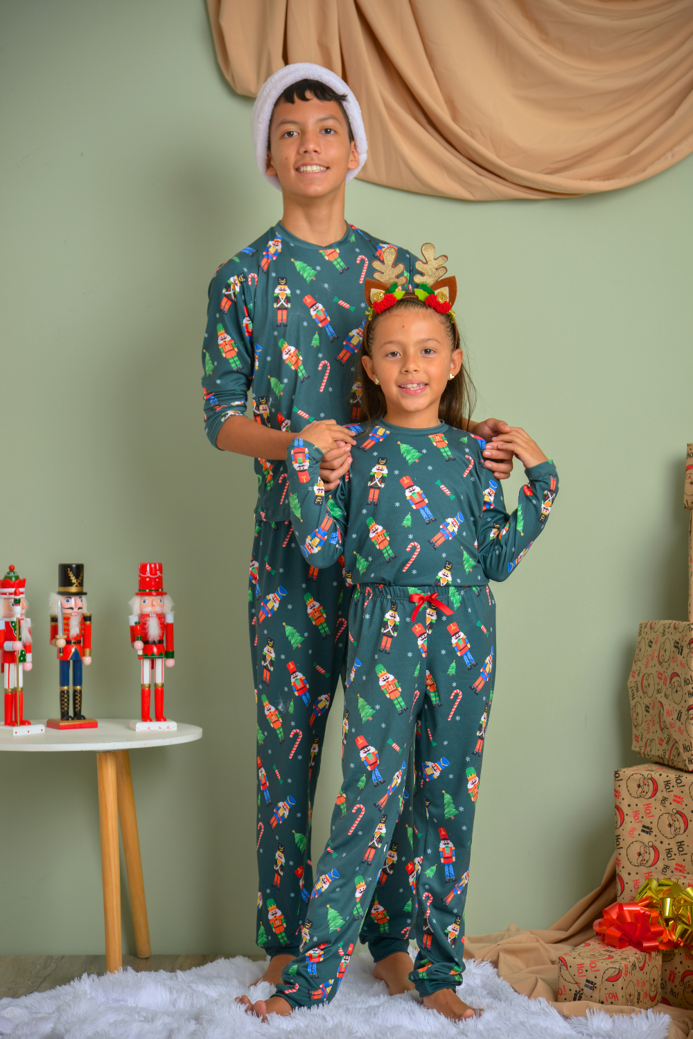 Incluye dos camisetas verde manga larga con estampado de Cascanueces y dos pantalones largos en el mismo color de la camisa con estampado.