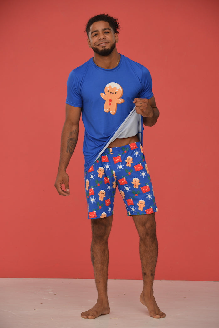 Incluye una camiseta azul de manga corta con galleta navideña, acompañada de un short con estampado de galletas. Una prenda cómoda, fresca y con mucho estilo para la temporada decembrina.