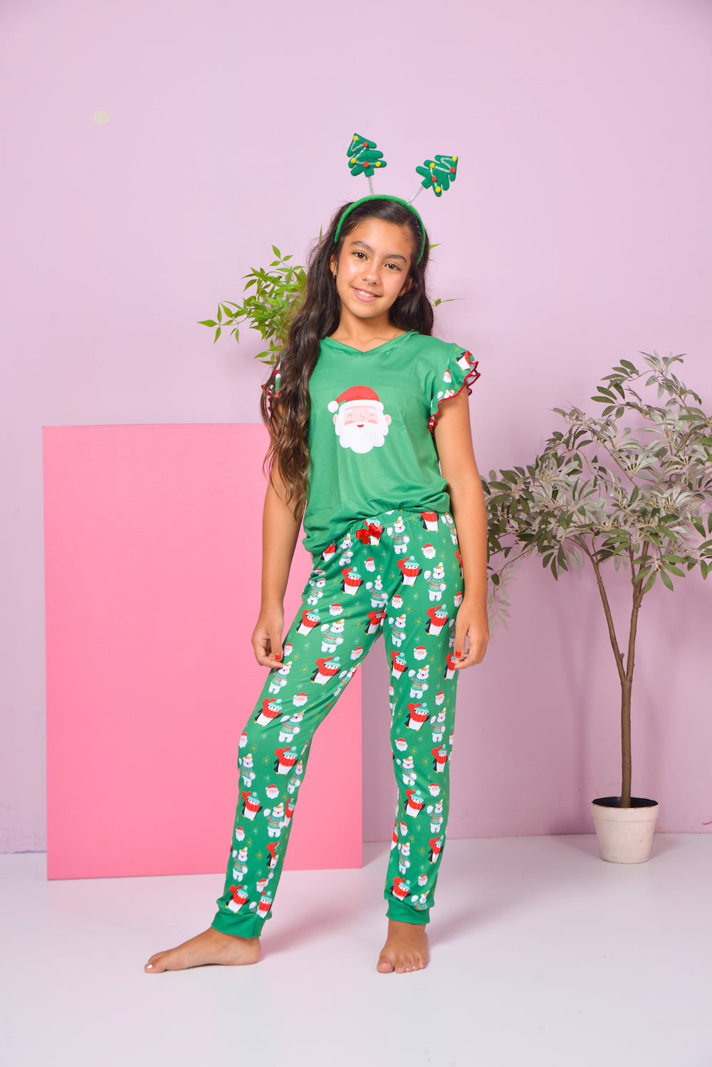 Haz de esta Navidad un momento aún más especial 🎅✨ con nuestra pijama navideña para niña “Klaus Green”, diseñada para brindar confort sin perder el espíritu festivo.