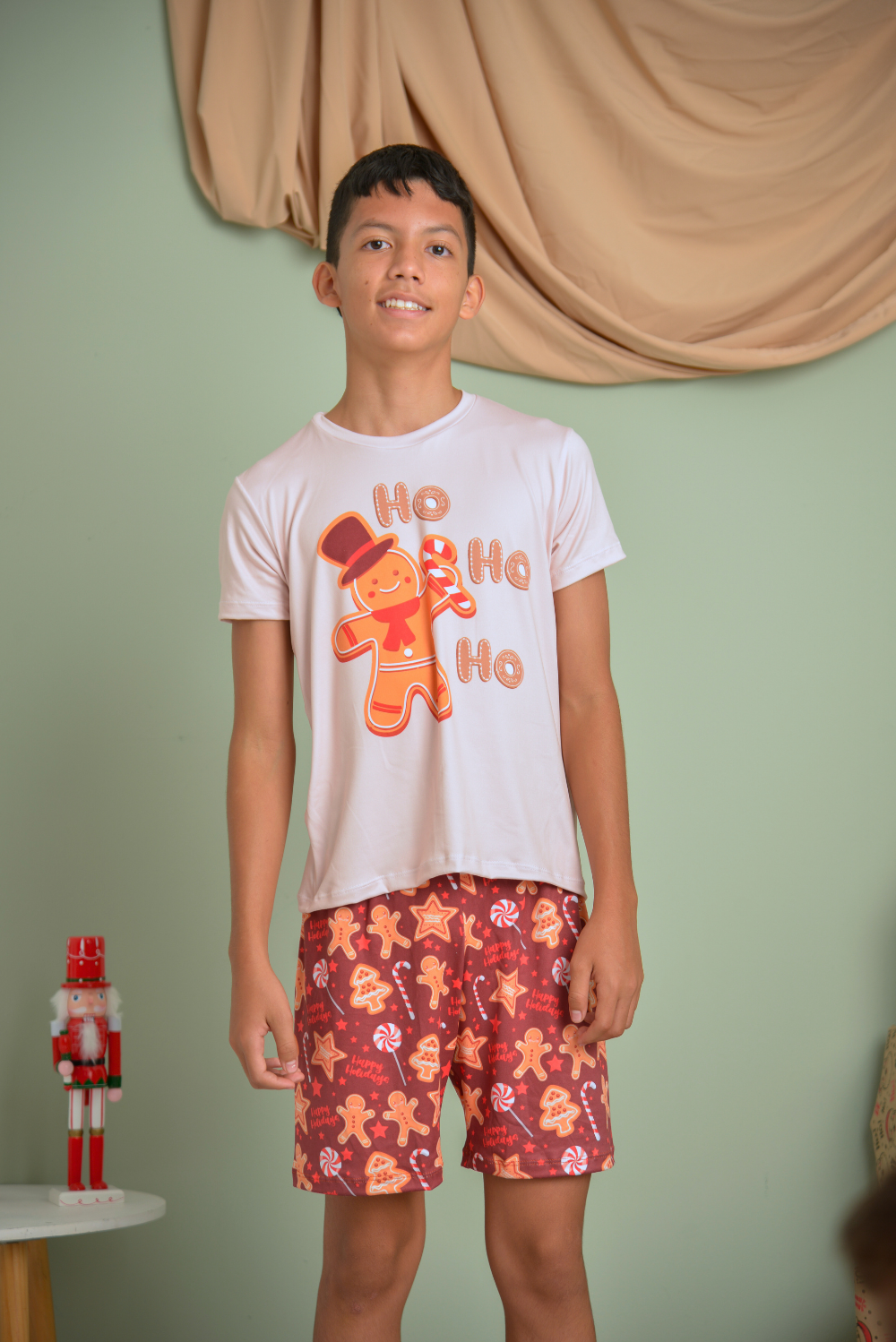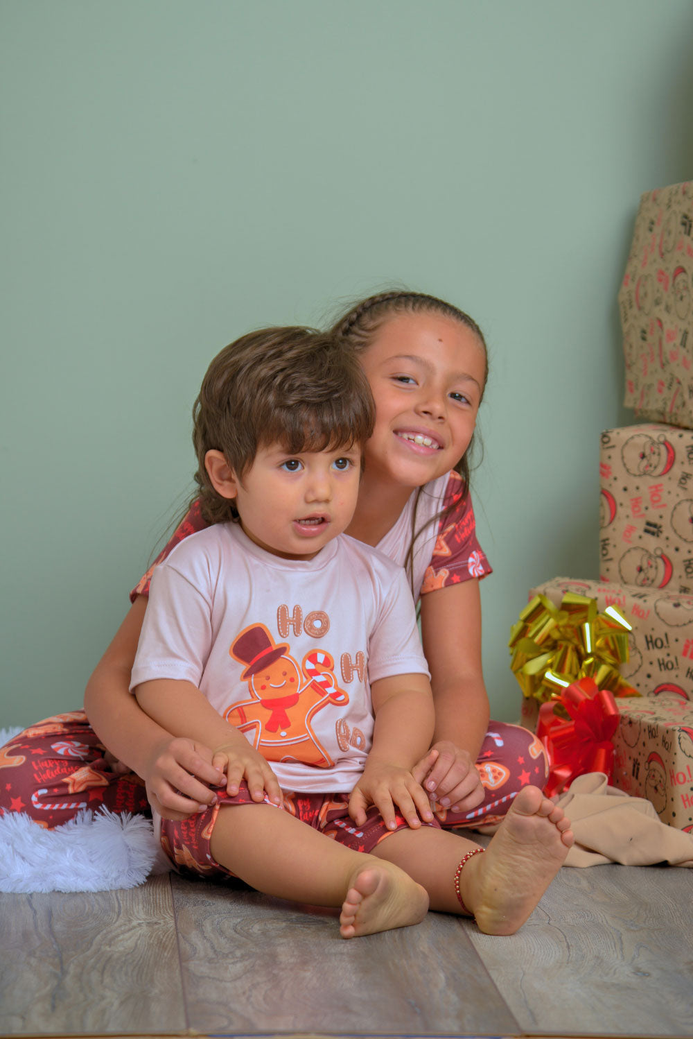 Haz que esta Navidad sea aún más especial con nuestra pijama navideña de niña, diseñada con un encantador estampado de galletas de jengibre. Incluye camiseta y pantaloneta, confeccionados en una tela similar a la viscosa elástica, lo que la hace suave, fresca y muy cómoda para dormir o disfrutar en casa.