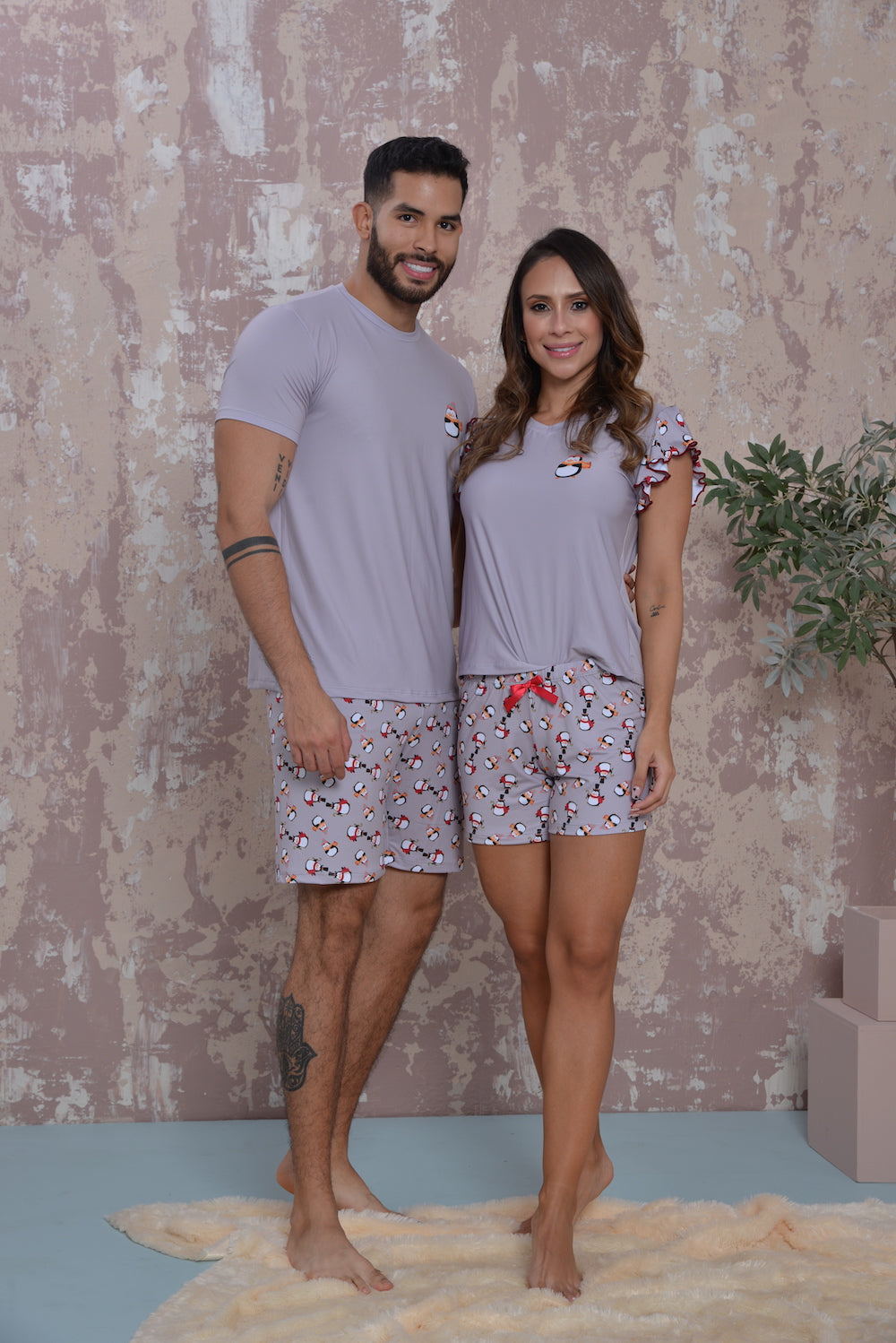 Incluye dos camisetas gris con estampado de pinguino y dos shorts gris con estampado de pinguinos.